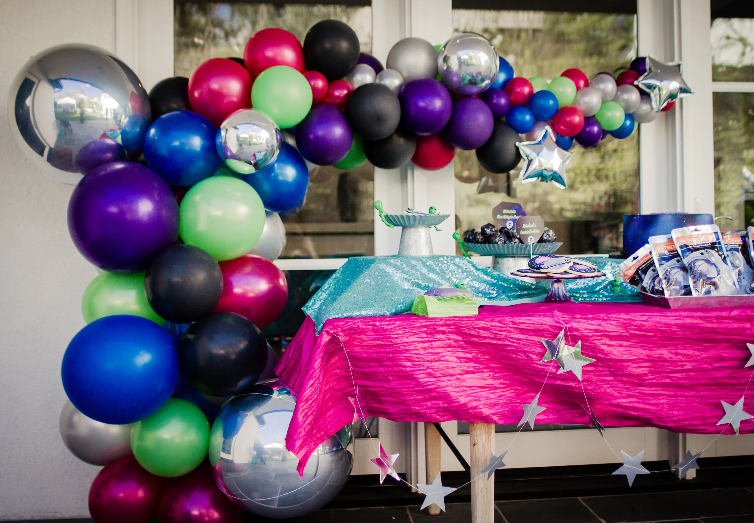 One of our repeat/favorite clients to work with is a writer on the new Star Trek (Picard!) series, and when she contacted us to plan her daughter Rosalind’s outer space themed party, we immediately had several ideas on how to make this 7th birthday celebration out-of-this world!